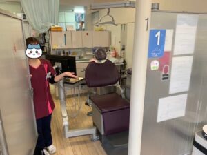 診察台の前でスタッフがお出迎え♪